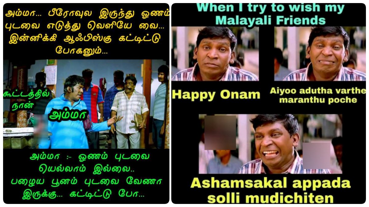 விடுவார்களா நம் மீமர்கள்.. வழக்கம் போல ஓணம் வாழ்த்துகளோடு, இந்த ஓணம் ஸ்பெஷல் ஆடைகளை அணிந்தவர்களையும் நகைச்சுவையாக கலாய்த்து தள்ளி விட்டனர்.