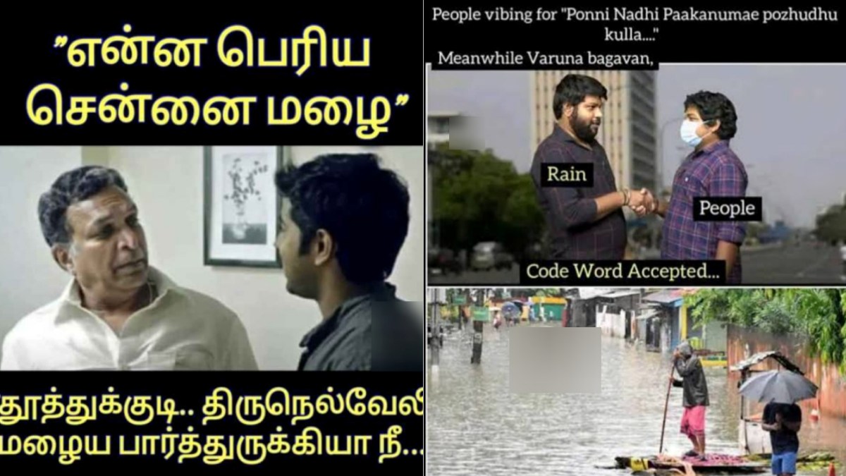 ஆனாலும் வழக்கம் போல், புண் பட்ட மனதை மீம்ஸ் போட்டு ஆற்று என கொஞ்சம் வாய்விட்டு சிரித்தாலாவது, மனப்பிரச்சினைகளில் இருந்து கொஞ்சம் தப்பித்துக் கொள்ளலாம் என மழை பற்றிய மீம்ஸ்களைப் பகிர்ந்து வருகின்றனர் சமூகவலைதளங்களில்.