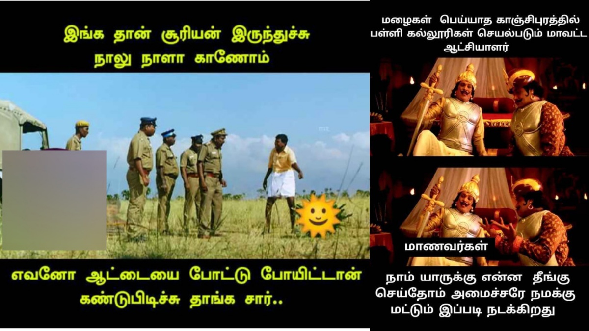 சென்னை: வெளியில் மழை கொட்டுகிறதென்றாலே, பள்ளிகளுக்கு விடுமுறை என்ற அறிவிப்பு வந்துவிடும் என்ற குஷி மாணவர்களுக்கு வந்துவிடும். பிறகென்ன தங்களுக்கு அலுவலகத்தில் விடுமுறை கிடைக்கவில்லையே என்ற கடுப்பையெல்லாம் மீம்ஸ் போட்டு வெளிப்படுத்தி வருகின்றனர் நெட்டிசன்கள்.