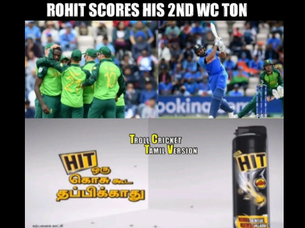 ஹிட் அடிச்சா ஒரு கொசுவும் தப்பிக்காது. அந்த மாதிரி, ஹிட்மேன் ரோகித் அடிக்க ஆரம்பிச்சா, எந்த பவுலரும் தப்பிக்க முடியாது என்று சொல்கிறது இந்த மீம். சபாஷ், கலக்குங்க மக்கா.
