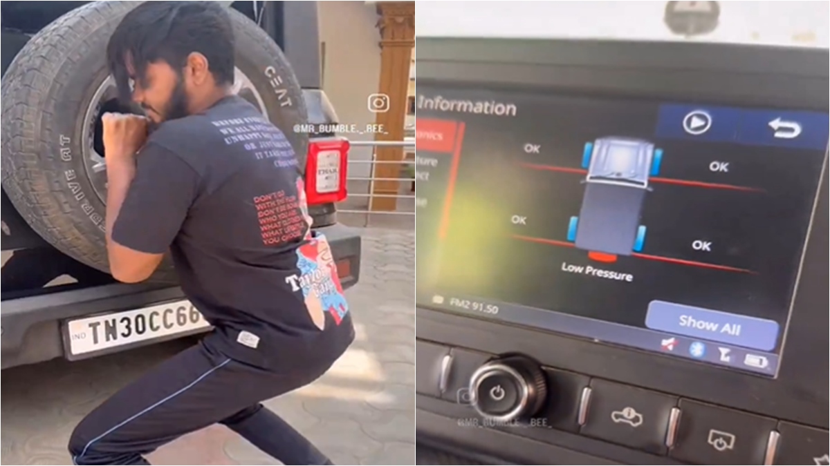 அந்த வீடியோவில் காரில் உள்ள டிஸ்பிளேவில், டயர் பஞ்சர் என்று சிக்னல் காட்டுகிறது.. அதனை பார்த்த யூடியூபர் என்னாச்சு என்று நான்கு டயர்களையும் போய் பார்த்துள்ளார் யூடியூபர். ஆனால் பஞ்சர் ஆகவில்லை. சரி என்னடா என்று திரும்பவும் காரில் ஏறி ஸ்டார்ட் செய்யலாம் என பார்த்தால், ஸ்டெப்னி டயர் பஞ்சர் என்று வந்துள்ளது. உடனே காரை விட்டு இறங்கிய அவர், நண்பரை அழைத்துக் கொண்டு நேராக ஒர்க் ஷாப் போயிருக்கிறார்.
