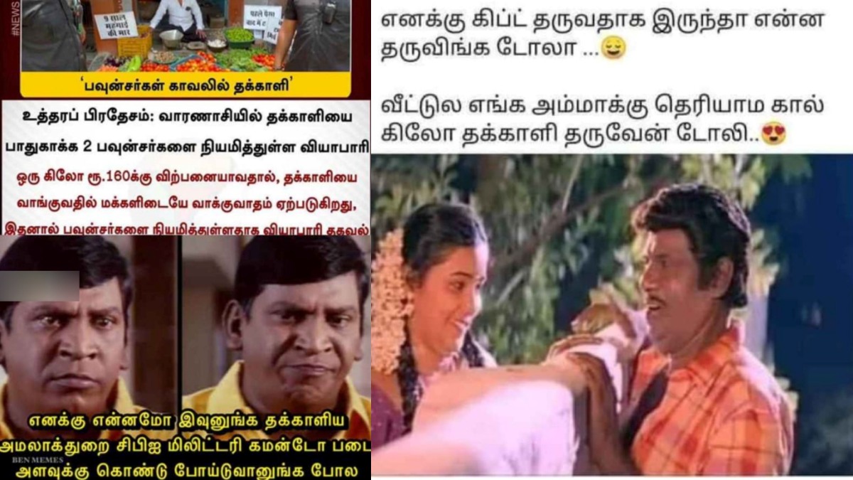 இதோ அப்படியாக சமூகவலைதளப் பக்கங்களில் நம் கண்ணில் பட்ட நகைச்சுவையான சில தக்காளி மீம்ஸ்களின் தொகுப்பு உங்களுக்காக...