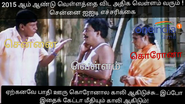 கொரோனா தாக்கம் மற்றும் சென்னைக்கு வெள்ள அபாயம் பற்றிய மீம்ஸ்கள்.