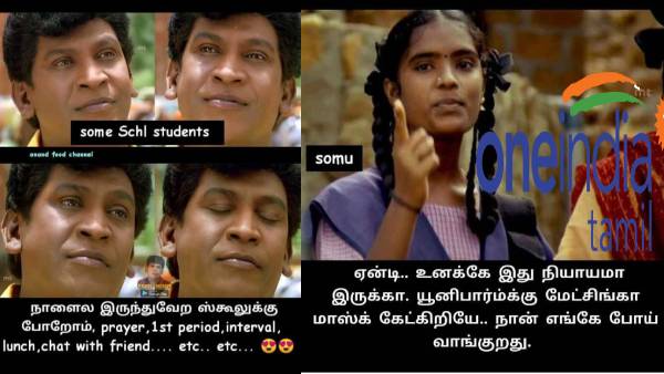 பள்ளிகள், கல்லூரி திறக்கப்பட்டது பற்றிய ஜாலி மீம்ஸ்களின் தொகுப்பு.