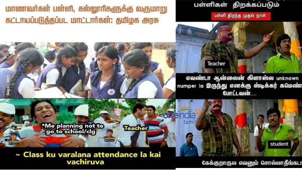 பள்ளிகள், கல்லூரி திறப்பு பற்றிய ஜாலி மீம்ஸ்களின் தொகுப்பு.