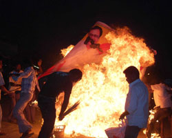 தங்கபாலு, இளங்கோவன் படங்களுக்கு செருப்பு மாலை-எரிப்பு: 17 பேர் கைது
