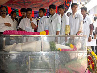 முத்துக்குமார் உடலுக்கு, இந்திய கம்யூனிஸ்டு தேசிய கட்டுப்பாட்டு குழு தலைவர் ஆர்.நல்லக்கண்ணு தலைமையில் கட்சி தொண்டர்கள் மலர் வளையம் வைத்து அஞ்சலி செலுத்தினர். பின்னர், முத்துக்குமார் தந்தைக்கு நல்லகண்ணு ஆறுதல் கூறினார்.
