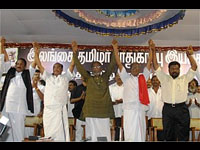 கூட்டத்தின் இறுதியில், இலங்கைத் தமிழர்களைக் காப்போம் என்ற உறுதிமொழியை வாசிக்க அதை அனைத்துத் தலைவர்களும் எழுந்து நின்று திரும்பக் கூறி உறுதிமொழி எடுத்துக் கொண்டனர்.