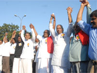 ஆயிரக்கணக்கான தொண்டர்களும் போராட்டத்தில் பங்கேற்றனர். இலங்கை தமிழ் எம்.பி. சிவாஜிலிங்கமும் இதில் கலந்து கொண்டார்.