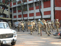 போலீசாரின் வெறித் தாக்குதலில் இருந்து தலைமை நீதிபதி முகோபாத்யாயா மயிரிழையில் தப்பியுள்ளார். யார் என்று தெரியாமல் அவரையும் போலீசார் விரட்டினர். அவர் ஓடியதால் தாக்குதலில் இருந்து தப்பினார்.