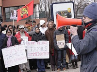 புதன்கிழமை இந்த மாபெரும் ஆர்ப்பாட்டம் நடைபெற்றது. இனப்படுகொலையில் ஈடுபட்டு வரும் அதிபர் ராஜபக்சே, பாதுகாப்பு செயலாளர் கோத்தபாய ராஜபக்சே, ராணுவத் தளபதி தளபதி சரத் பொன்சேகா ஆகியோரை கைது செய்து விசாரணை செய்து தண்டிக்குமாறு கோரி தமிழர்கள் கோஷமிட்டனர்.