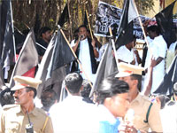 இதற்கிடையே தூத்துக்குடிக்கு வரும் வெளியுறவுத்துறை அமைச்சர் பிரணாப் முகர்ஜிக்கு கருப்புகொடி காட்டப்போவதாக இலங்கை தமிழர் பாதுகாப்பு இயக்கம் அறிவித்திருந்தது.