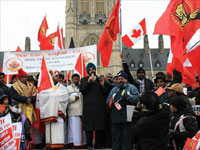 இந்தியா உள்பட உலகின் பல நாடுகளில் விடுதலைப்புலிகள் அமைப்புக்கு தடை விதிக்கப்பட்டுள்ளது. இதுபோல கனடாவிலும் இந்த அமைப்பு தடை செய்யப்பட்டுள்ளது. என்றாலும் ஆயிரக்கணக்கான தமிழர்கள் விடுதலைப்புலிகளின் இந்தக் கொடி மற்றும் பிரபாகரன் படங்களுடன் ஆர்ப்பாட்டம் செய்ததற்கு இலங்கை அரசு அதிர்ச்சி தெரிவித்துள்ளது.