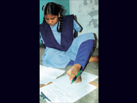 காலால் எழுதிய மாணவி: