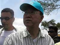 கொழும்பு வந்த பான் கி மூன் நேற்று வவுனியாவில் உள்ள இடம் பெயர்ந்த தமிழ் மக்கள் கிட்டத்தட்ட 3 லட்சம் பேர் தங்க வைக்கப்பட்டுள்ள மானிக் பார்ம் இடம் பெயர்ந்தோர் முகாமுக்குச் சென்றார்.