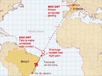 கடந்த ஞாயிற்றுக்கிழமை 228 பயணிகளுடன் AF 447 என்ற அந்த விமானம் இரவு 11.30 மணிக்கு பிரேசிலில் இருந்து புறப்பட்டது. ஆனால், நள்ளிரவு 2.33 மணிக்கு அந்த விமானத்துடனான தகவல் தொடர்பு துண்டிக்கப்பட்டது.