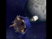 முதலில் சென்டார் என்ற ராக்கெட்டை மோத விட்டனர். நிலவின் தென் முனையில் இந்த ராக்கெட் மோத விடப்பட்டது.