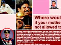இந்திய அரசாங்க முத்திரையுடன் வெளியிடப்பட்ட இந்த விளம்பரத்தில் பெண் சிசுக்கொலை தடுப்பு பற்றிய வாசகங்களுடன், கபில்தேவ், ஷேவாக், அம்ஜத் அலிகான், சோனியா, மன்மோகன்சிங் போன்றவர்களின் படம் இடம் பெற்றுள்ளது.