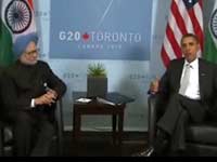 கனடாவில் உள்ள டொராண்டோ நகரில் ஜி-20 உச்சி மாநாடு நடைபெறுகிறது. இதில் கலந்து கொள்வதற்காக பிரதமர் மன்மோகன்சிங் கனடா சென்றுள்ளார். இந்த மாநாட்டின் போது அமெரிக்க அதிபரை பிரதமர் மன்மோகன்சிங் சந்தித்து பேசினார்.