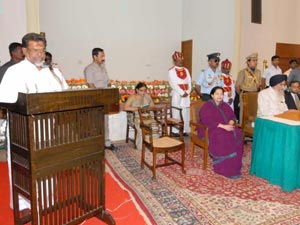 அமைச்சர் பதவி ஏற்பு நிகழ்ச்சியில் முதல்வர் ஜெயலலிதா, சபாநாயகர் ஜெயக்குமார், அமைச்சர்கள் உள்ளிட்டோர் கலந்து கொண்டனர்.