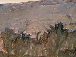 செவ்வாய் கிரகத்தில், இருண்ட சில நீண்ட ஒழுங்கற்ற கோடுகள் போன்ற உருவங்கள் எடுக்கப்பட்ட படங்களில் பதிவாகி உள்ளது. இவை தண்ணீரைக் கொண்ட கட்டிகளாக இருக்க அதிக வாய்ப்புள்ளது. இவை சில பூமி மாதங்களில் பல மடங்காக வளர்ந்து விடுகிறது.