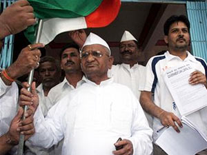 அன்னாவின் போராட்டத்திற்கு ஆரம்பத்தில் காவல்துறை பல்வேறு கெடுபிடிகளை செய்தது. இதை மீறப் போவதாக அவர் கூறியதைத் தொடர்ந்து கைது செய்து திஹார் சிறையில் அடைத்தனர். இதனால் ஆவேசமடைந்த அன்னா சிறையிலேயே உண்ணாவிரதத்தைத் தொடங்கினார்.அவருக்கு ஆதரவாக டெல்லியிலும், நாடாளுமன்றத்திலும், நாடு முழுவதும் போராட்டங்கள் வெடித்தன. இதையடுத்து மத்திய அரசு பணிந்தது. அன்னாவை விடுதலை செய்தது.