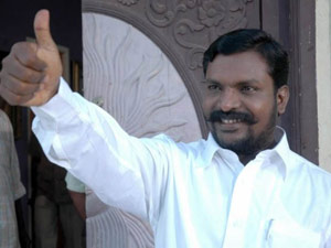 மூவரின் தூக்கு தண்டனையையும் ரத்து செய்ய வேண்டும் என்று ஆங்கிலத்தில் எழுதிய அட்டையை ஏந்தியபடி நாடாளுமன்றத்திற்குள் நுழைந்தார் திருமாவளவன்.