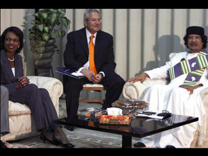 இந்த சந்திப்பை தனது தனிப்பட்ட முகாம் அறையில் வைத்துக் கொள்ள விரும்பினாராம் கடாபி. ஆனால் அவரது மாளிகையில் சந்திப்பதாகக் கூறிவிட்டாராம் ரைஸ்.