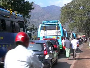 பின்னர் போலீசார் போக்குவரத்து நெரிசலை சரி செய்தனர். கடந்த சில தினங்களாக முல்லைப் பெரியாறு பிரச்சனை காரணமாக சபரிமலை செல்லும் கூட்டம் குறைந்திருந்த நிலையில் நேற்று சபரிமலை செல்லும் ஐயப்ப பக்தர்களின் வாகனங்கள் பன்மடங்காக பெருகியுள்ளது என்பது குறிப்பிடத்தக்கது.