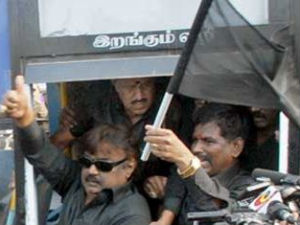 விஜயகாந்த் நீக்கத்திற்கு எதிர்ப்பு-கருப்புச் சட்டசபையில் சட்டசபைக்கு வந்த தேமுதிக எம்எல்ஏக்கள்