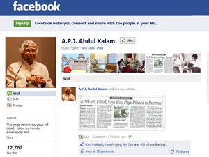 இந்தியாவில் இந்த பேஸ்புக் செம ஹிட்டாகியுள்ளதாம். கலாம் தொடர்பாக ஏற்கனவே பல பேஸ்புக் பக்கங்கள் இருந்தாலும், அதிகாரப்பூர்வமாகவே தானே பேஸ்புக் குளத்தில் குதித்துள்ளார் கலாம்.