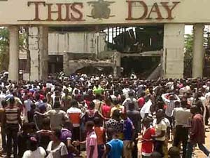 தலைநகர் அபுஜாவின் வட மத்திய பகுதியிலும் கடுனா மாகாணத்திலும் உள்ள திஸ் டே நாளிதழின் அலுவலகங்கள் தாக்குதலுக்குள்ளாகின. அபுஜாவில் உள்ள அலுவலகத்தில் நேற்று முதல் தாக்குதல் நடத்தப்பட்டது. பின்னர் கடுனா மாகாணத்தில் அடுத்த தாக்குதல் நிகழ்த்தப்பட்டது.