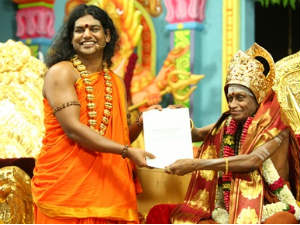 குருவுக்கு ரூ.1 கோடி பாத காணிக்கை வழங்கி இருக்கிறேன். மேலும் ரூ.4 கோடி பாத காணிக்கை சமர்பிக்க இருக்கிறேன். மேலும் எனது ஆசிரமத்தில் உள்ள டாக்டர்கள், என்ஜினீயர்கள், படித்த சன்னியாசிகள் 50 பேரை ஆதீன மடத்தின் நிர்வாகத்தை கவனிக்க மதுரைக்கு அனுப்பி வைப்பேன்.