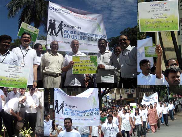 உலக சுற்றுச் சூழல் தினத்தையொட்டி, ஒன் இந்தியா சார்பில் விழிப்புணர்வு பிரச்சார நடைபயணம் இன்று பெங்களூரில் நடந்தது. இதில், நூற்றுக்கும் மேற்பட்ட ஒன் இந்தியா பணியாளர்கள் கலந்துகொண்டனர்.