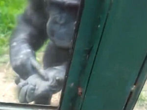 இதையடுத்து சற்று சீரியஸான சிம்பன்சி, நான் சொல்வது உனக்குப் புரியலையா என்று கேட்பது போல அந்த நபரிடம் மீண்டும் கேட் தாழ்ப்பாளை திறந்து விடு, நான் வெளியே போக வேண்டும் என்று மறுபடியும் பொறுமையாக செய்து காட்டியது. அத்தோடு நில்லாமல், தனது உள்ளங்கையில் ஒரு விரலால் சுட்டிக் காட்டியபடியும் அது அந்த நபருக்குத் தான் சொல்ல நினைப்பதை செய்து காட்டியது.