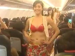 விமானம் கிளம்பியதும் உடைகளைக் களைந்து போட்ட பெண்கள் பிகினி உடையில் நடனமாட ஆரம்பித்தனர். பின்னர் அவர்களிடையே அழகிப் போட்டியும் நடந்தது.