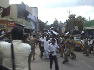 இந்த நிலையில், சுமார் 250பேர் ஊர்வலமாக வந்துகொண்டிருந்த போது அவர்களில் சிலர் வழியில் இருந்த ஒரு டாஸ்மாக் கடைக்குள் திடீரென புகுந்தனர். அவர்களைப் போலீஸார் தடுத்து நிறுத்தினர். ஆனால் அதையும் மீறி சிலர் உள்ளே புகுந்து விட்டனர்.