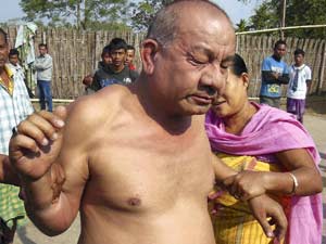 அஸ்ஸாம் மாநிலம் சிராங் மாவட்டத்தைச் சேர்ந்தவர் மூத்த காங்கிரஸ் தலைவர் பிக்ரம் சிங் பிரம்மா. போடோலாந்து பகுதி காங்கிரஸ் ஒருங்கிணைப்பு குழு தலைவராக உள்ளார் பிரம்மா. இந்நிலையில் அவர் சல்பாரி என்ற இடத்தில் இன்று அதிகாலை 2 குழந்தைகளின் தாயை கற்பழிக்க முயன்றுள்ளார். இதைப் பார்த்த கிராம மக்கள் அதிலும் குறிப்பாக பெண்கள் பிரம்மாவின் சட்டையைக் கழற்றிவிட்டு அவரை அடித்து உதைத்தனர். சில பெண்கள் அவரை கன்னத்தில் அறைந்தனர்.