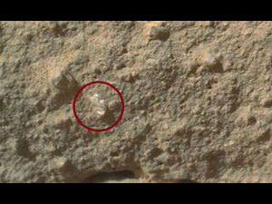 செவ்வாய் கிரகத்தில் ஆய்வு மேற்கொள்ள நாசா க்யூரியாசிட்டி விண்கலத்தை அனுப்பியது. அது கடந்த மாதம் அனுப்பிய புகைப்படத்தில் பாறையின் மேல் முத்து நிறத்தில் பூ போன்ற வடிவம் ஒன்று உள்ளது.