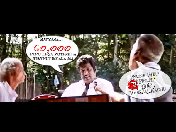 அதேபோல கவுண்டமணியின் பாப்புலர் பட வசனங்களில் ஒன்றான போன் வயர் பிஞ்சு போயி அஞ்சு நாளாச்சு என்ற வசனமும், டேய் நான் பத்தாவது பாஸ்டா போன்றவையும் பேஸ்புக் பக்கங்களாகி வயிறுகளைப் பதம் பார்த்து வருகின்றன.