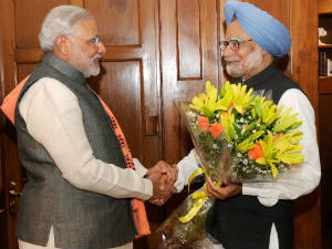 மன்மோகன் சிங்கைச் சந்தித்தார் நரேந்திர மோடி-வாசல் வரை வந்து வரவேற்றதாக மகிழ்ச்சி