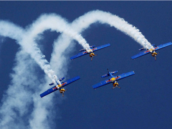 ரெட் புல் நிறுவனத்தின் ஸ்லின் 50LX சிங்கிள் என்ஜின் விமானங்கள் இவை. விமானக் கண்காட்சியின் துவக்கத்தில் செய்து காட்டிய விண் சாகஸங்கள்