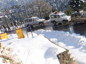 கடும் பனிப்பொழிவு காரணமாக ஹிமாச்சலப்பிரதேசத்திற்கு சுற்றுலா வந்தவர்கள் வெள்ளிப் பனி படர்ந்துள்ள காட்சிகளை கண்ட குதூகலத்தில் பனிக்கட்டிகளை ஒருவர் மீது ஒருவர் விசிறியடித்து தங்கள் மகிழ்ச்சியை வெளிப்படுத்தினர்.