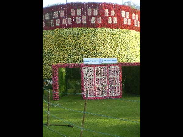 மலர் கண் காட்சியை முன்னிட்டு பூங்கா நுழைவு வாயில் பகுதியில், 20 அடி உயரமும், 8 அடி அகலத்திற்கு லில்லியம் மலர்களை கொண்டு பிரமாண்ட வரவேற்பு வளைவு அமைக்கப்பட்டுள்ளது.