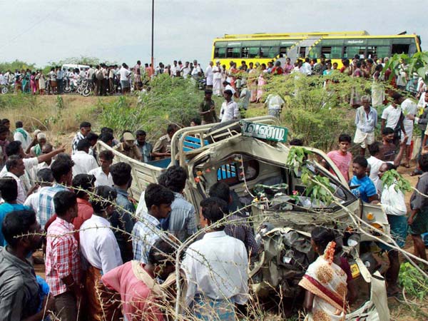 புதுக்கோட்டையில் ஆட்டோ மீது தனியார் பஸ் மோதி 9 பள்ளிக் குழந்தைகள் பலி!! 3 பேர் கவலைக்கிடம்!!