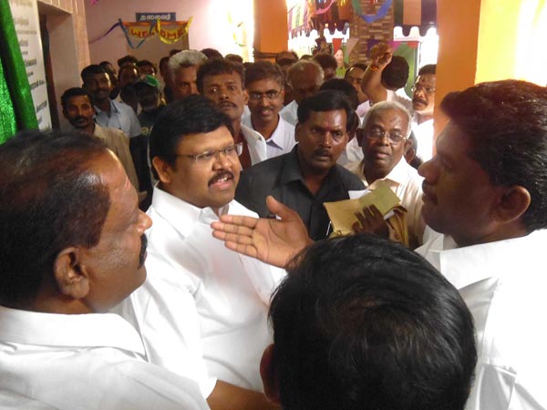 விழாவில் கல்வெட்டு திறக்கும் போதே அதிமுக வினர் முதல்வர் ஜெயலலிதா படம் இல்லை என்று கூறி தகராறு செய்தனர். காரில் ஏறப்போன அமைச்சர் மீண்டும் திரும்பி வந்து அமைச்சரிடம் விளக்கம் கேட்டார். அப்போது அதிமுகவினர் மீண்டும் ரகளையில் ஈடுபட்டனர்.