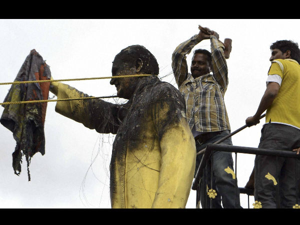 ஜெகன் மோகன் ரெட்டியின் கோட்டையாக கருதப்படுகிற கடப்பாவில் ஒருங்கிணைந்த ஆந்திராவை வலியுறுத்தியும் தெலுங்கானாவுக்கு எதிர்ப்பு தெரிவித்தும் நேற்று போராட்டம் நடைபெற்றது. அப்போது இந்திரா காந்தி சிலை மீது பெட்ரோல் ஊற்றி எரித்து அப்புறப்படுத்துகின்றனர் திருவாளர் பொதுஜனங்கள்.
