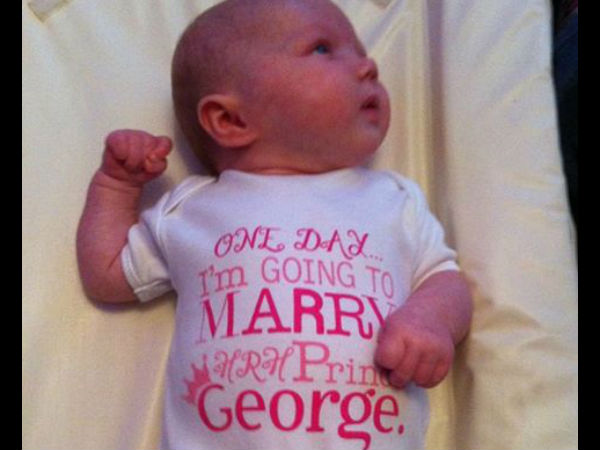 ஜேரோவில் உள்ள 28 வயது இளம் தாயான அமி பிராடி , தனது 9 வார பெண் குழந்தையான சியன்னாவுக்கு இந்த அழகிய உடையை அணிவித்து போட்டோ எடுத்துள்ளார். அதில் சியன்னா ‘ ஒருநாள் நான் நிச்சயமாக இளவரசர் ஜார்ஜை கல்யாணம் செய்து கொள்ளப் போகிறேன்' என தெரிவிப்பது போல் சித்தரிக்கப் பட்டிருந்தது.