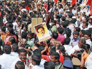 இரு கட்சி தொண்டர்களும் கைகளில் கொடியுடன் கோஷங்களை எழுப்பினர். அப்போது, ரயில் மீது ஏறி நின்ற திமுக தொண்டர் ராஜா என்பவர் கீழே விழுந்து உயிரிழந்தார்