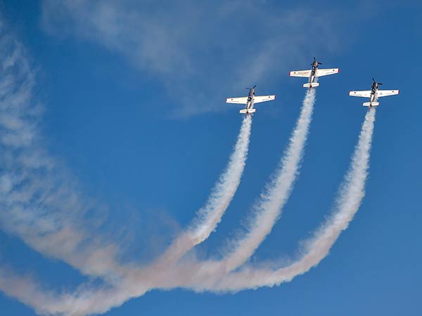 பெங்களூர்: ஏரோ இந்தியா 2019 நிகழ்ச்சியில், விமானப்படையின் விமானங்கள் வானில் வர்ணஜாலம் நிகழ்த்தி சாகசங்களில் ஈடுபட்டன. இதனைக் கண்டு பார்வையாளர்கள் உற்சாகமடைந்தனர்.